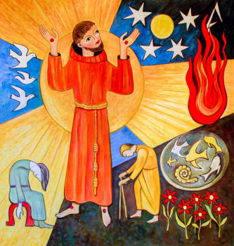 Gelobt seist du, mein Herr, mit allen deinen Geschöpfen, zumal dem Herrn Bruder Sonne; er ist der Tag, und du spendest uns das Licht durch ihn. Und schön ist er und strahlend in großem Glanz, dein Sinnbild, o Höchster.