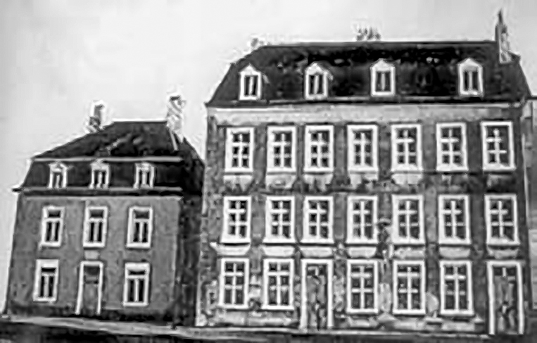 Gegen Ende des 19. Jh. entschlossen sich die Brüder Collart, die Betreiber der Steinforter Eisenhütte, für ihre Beschäftigten ein Spital zu errichten. Auch für eine Kinderbewahrschule, eine Sonntagsschule für Mädchen und Nähkurse gab es Bedarf. Am 15.11.1898 stellten sie daher dem Franziskanerorden ein Haus mit Stall, Schuppen und Garten in der Hobscheider Straße per Schenkung zur Verfügung (Maison Ste Marie). Das Haus wurde aufgestockt und entsprechend der geplanten Nutzung umgebaut. Als Gegenleistung für die unentgeltliche Nutzung mussten die Nutznießer die Güter in den Dienst einer sozialen Arbeit stellen.
